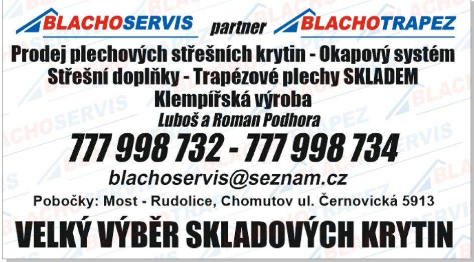 Blachoservis je specializovaná firma zaměřená na prodej střešních krytin, klempířských doplňků a okapových systémů. Naším cílem je poskytovat zákazníkům kvalitní materiály a kompletní servis v oblasti střešních konstrukcí. V našem sortimentu najdete širokou škálu plechových střešních krytin, které jsou skladem vždy minimálně v množství 2000m2. Nabízíme různé typy krytin, jako jsou například trapézové, imitace tašek nebo imitace falcované krytiny tzv. klik-systém a mnoho dalších. Dostupné jsou v různých povrchových úpravách a více než 10 barevných provedeních. Naším hlavním partnerem je Blachotrapez spol. s.r.o. - výrobce střešních krytin. Mají výrobní závody v Polsku, nicméně materiál, ze kterého vyrábí střešní krytiny pomocí moderních strojů se dováží např. z Německa, Norska nebo třeba z Itálie. Dnes nás najdete na dvou pobočkách v Rudolicích u Mostu, ul. Školní 100 metrů pod psím útulkem a nebo v Chomutově za Globusem na adrese Černovická 5913.